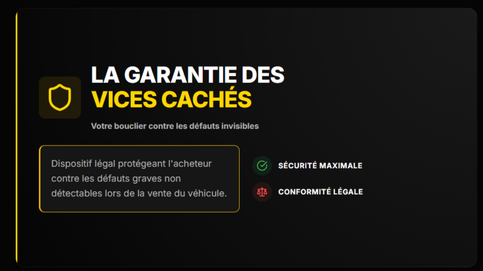 La garantie des vices cachés complète ce dispositif. Elle couvre les défauts graves rendant le véhicule impropre à l’usage prévu, non détectables lors de l’achat. Cette garantie s’étend au-delà de 2 ans si le vice existait lors de la vente.