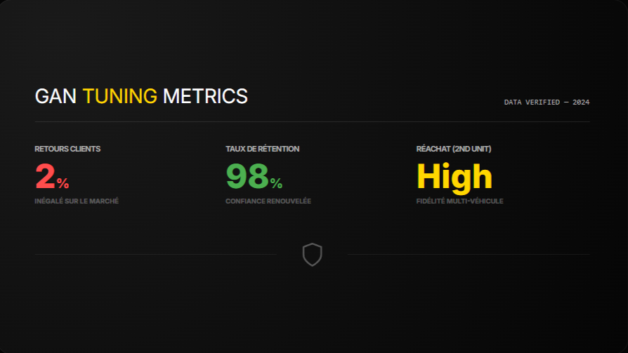 Non, elle s’y ajoute. La garantie constructeur couvre tous les défauts de fabrication et conformité. La garantie GAN couvre spécifiquement les dommages moteur liés aux contraintes supplémentaires du chip tuning. Les deux garanties sont cumulatives et complémentaires. Cette double protection sécurise totalement votre investissement.