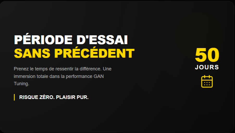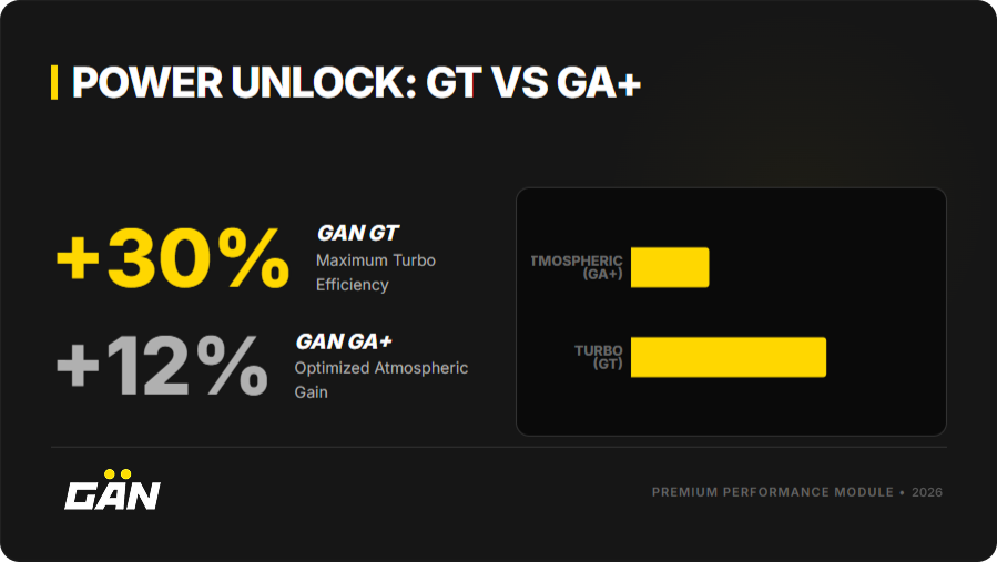 Le module GAN GT pour moteurs turbo offre jusqu’à 30% de puissance supplémentaire. Le GAN GA+ pour moteurs atmosphériques délivre jusqu’à 12% de gain. Ces résultats proviennent de tests sur plus de 30 000 véhicules depuis 2015.